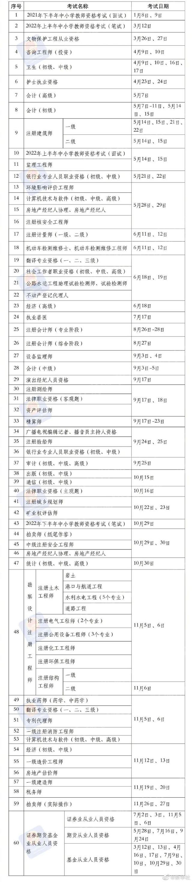 人社部:2022年國家職業(yè)資格考試時(shí)間表公布